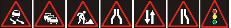 1.17. Rodyklės su lenktu kotu įspėja, kad artėjama prie važiuojamosios dalies susiaurėjimo arba 1.1 ar 1.3, 1.10 ištisinės ženklinimo linijos, kuri atskiria priešingų krypčių transporto srautus.
