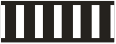 2. Vertikalusis ženklinimas, susidedantis iš pakaitomis einančių baltų ir juodų juostų ant kelio statinių ir kelio įrangos elementų, nurodo jų gabaritus, padeda orientuotis ir žymimas taip: