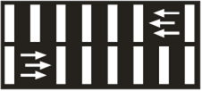 1.13.2. „Zebras“ žymi nereguliuojamą pėsčiųjų perėją, o rodyklės – pėsčiųjų ėjimo kryptį.