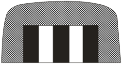 2.4. Įstriža plati juoda juosta žymi signalinius stulpelius, užtvarus, aptvėrimų (atitvarų) atramas ir panašiai.