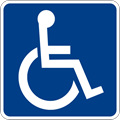 1.24. Neįgaliojo su vežimėliu simbolis žymi stovėjimo vietą, kurioje gali stovėti tik transporto priemonės, pažymėtos skiriamuoju ženklu „Neįgalusis“ arba neįgalių asmenų automobilių statymo kortele.