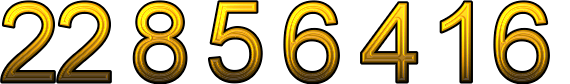 Number 22856416 in hexadecimal code can be written 15CC2E0.