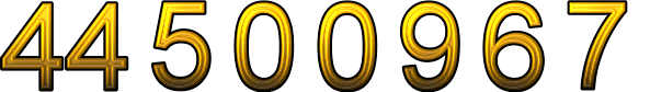 Number 44500967 in British English words is forty-four million five hundred thousand nine hundred sixty-seven.