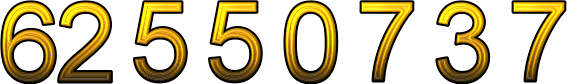 Number 62550737 in hexadecimal code can be written 3BA72D1.