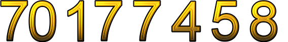 Number 70177458 in American English words is seventy million one hundred seventy-seven thousand four hundred fifty-eight, in German words is siebzig Millionen einhundertsiebenundsiebzigtausendvierhundertachtundfünfzig, in French words is soixante-dix millions cent soixante-dix-sept mille quatre cent cinquante-huit, in Spanish words is setenta millones ciento setenta y siete mil cuatrocientos cincuenta y ocho, in Italian words is settantamilonicentosettantasettemilaquattrocentocinquantotto, in Dutch words is zeventig-Miljoen-eenhonderdzevenenzeventigDuizendvierhonderdachtenvijftig, in Danish words is halvfjerds millioner et hundrede syv og halvfjerds tusinde fire hundrede otte og halvtreds.