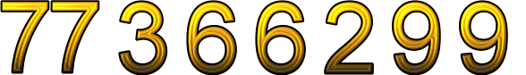 Number 77366299 in American English words is seventy-seven million three hundred sixty-six thousand two hundred ninety-nine, in German words is siebenundsiebzig Millionen dreihundertsechsundsechzigtausendzweihundertneunundneunzig, in French words is soixante-dix-sept millions trois cent soixante-six mille deux cent quatre-vingt-dix-neuf, in Spanish words is setenta y siete millones trescientos sesenta y seis mil doscientos noventa y nueve, in Italian words is settantasettemilonitrecentosessantaseimiladuecentonovantanove, in Dutch words is zevenenzeventig-Miljoen-driehonderdzesenzestigDuizendtweehonderdnegenennegentig, in Danish words is syv og halvfjerds millioner tre hundrede seks og tres tusinde to hundrede ni og halvfems.