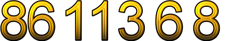 Number 8611368 in American English words is eight million six hundred eleven thousand three hundred sixty-eight, in German words is acht Millionen sechshundertelftausenddreihundertachtundsechzig, in French words is huit millions six cent onze mille trois cent soixante-huit, in Spanish words is ocho millones seiscientos once mil trescientos sesenta y ocho, in Italian words is ottomiloniseicentoundicimilatrecentosessantotto, in Dutch words is acht-Miljoen-zeshonderdelfDuizenddriehonderdachtenzestig, in Danish words is otte millioner seks hundrede elleve tusinde tre hundrede otte og tres.