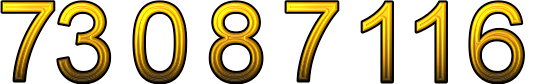 Numeris 73087116 lietuviškai yra septyniasdešimt trys milijonai aštuoniasdešimt septyni tūkstančiai šimtas šešiolika.